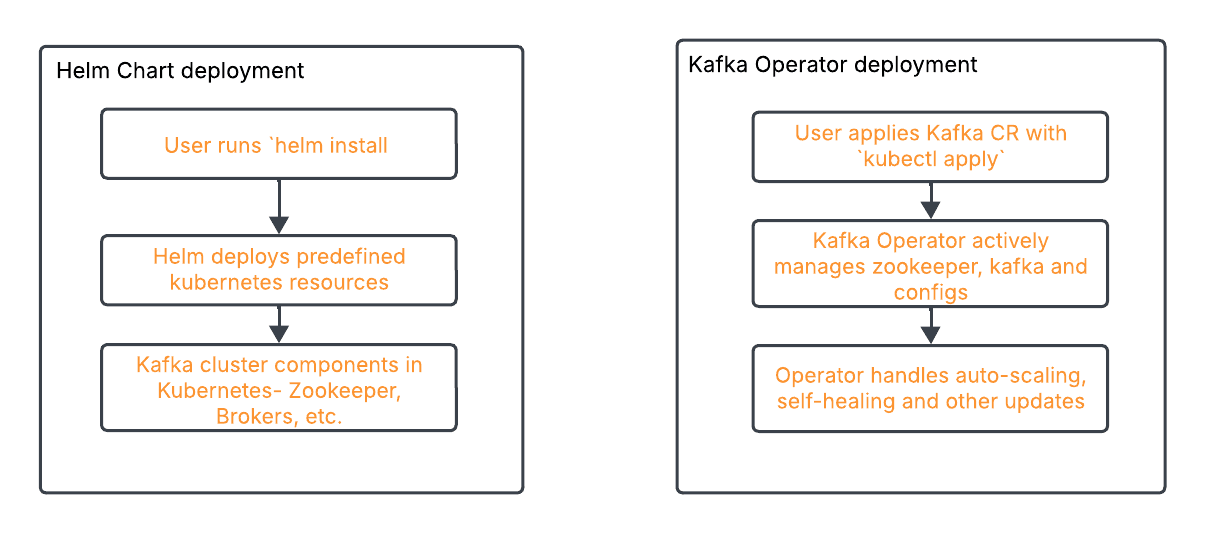 How Helm Chart deployment process compares to Kafka Operator deployment process